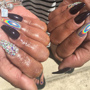 So I know EVERYONE has heard and/or seen the new nail trend that has any nail lover going Wild!! That’s right! Chrome and Holographic Nail Pigments can turn any color into a metallic-mesmerizing Nail Color Fantasy! Be a show stopper with the HOT metallic Chrome Finish or add some more spice and color to your nail experience with the rainbow Holographic effect! You can put the chrome pigment over any color. Add it to one nail as an accent or put it on all ten! You can even Chrome out your toes!!!! If you are in the Atlanta area come and let Toni B get you gathered with this nail trend!